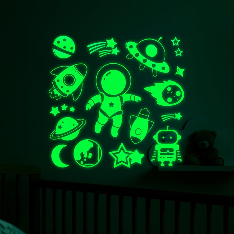 ADESIVOS DECORATIVOS 25X21 CM ESPAÇO LUMINOSOS BRILHA NO ESCURO
