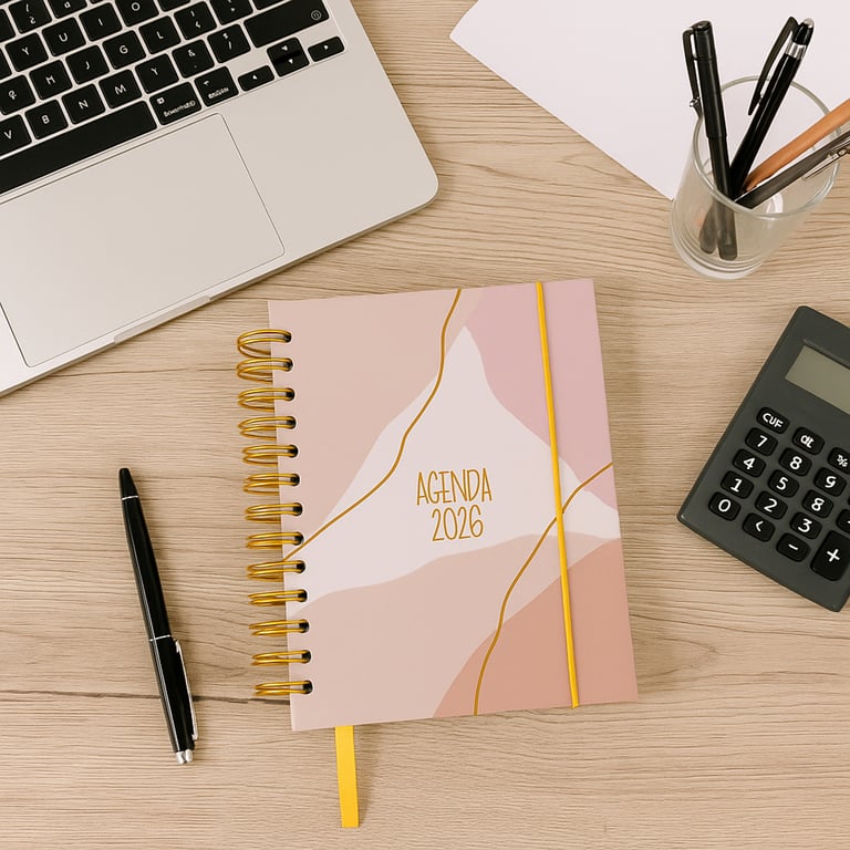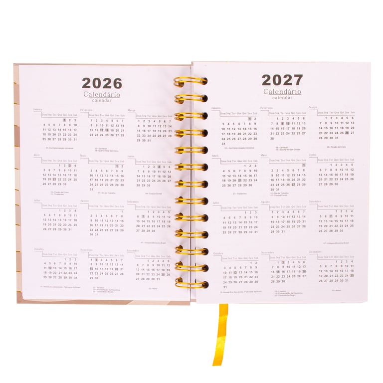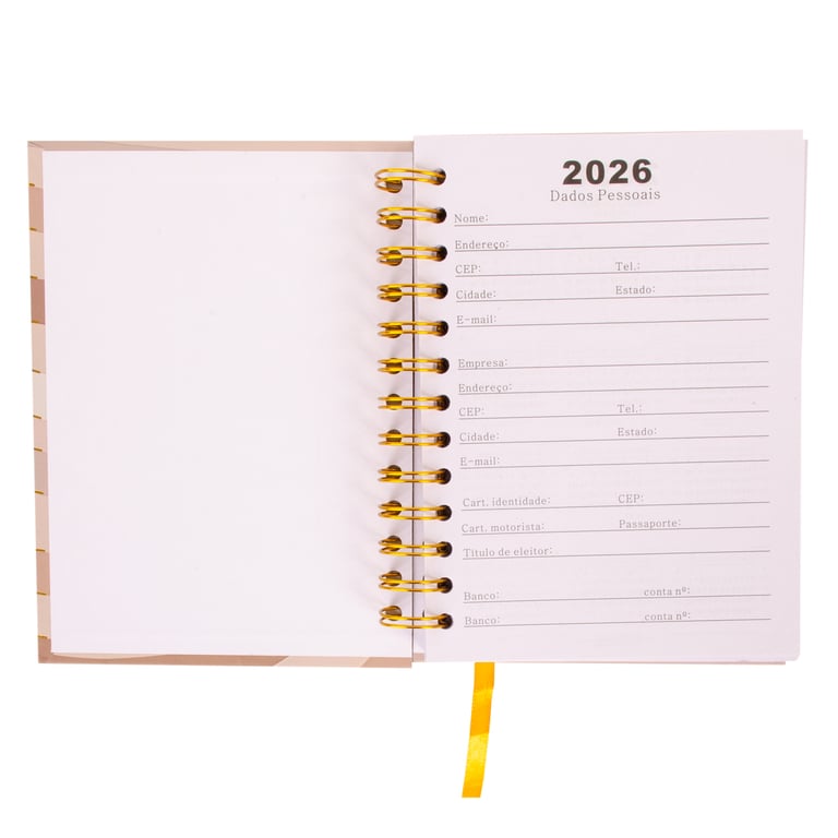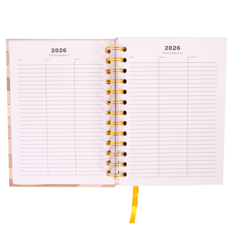 AGENDA 2026 19X14,5X2 CM 168 FOLHAS ESPIRAL DOURADO CAPA DURA