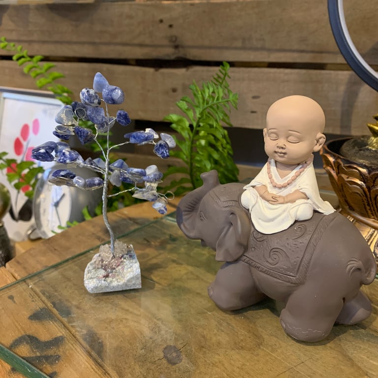Sugestões de uso A ÁRVORE DE SODALITA PROMOVE A SERENIDADE, A CRIATIVIDADE E A INTUIÇÃO. AUXILIA COMBATENDO ENENRGIAS NEGATIVAS DO AMBIENTE. É IDEAL PARA QUEM TEM PROBLEMAS COM INSÔNIA, FAVORECENDO UM SONO REPARADOR. PODE SER DEIXADO NO QUARTO PRÓXIMO A CAMA. PODENDO SER USADOS SOZINHOS OU EM COMPOSIÇÕES COM OUTROS OBJETOS EM SALAS, QUARTOS, CONSULTÓRIOS, CLÍNICA