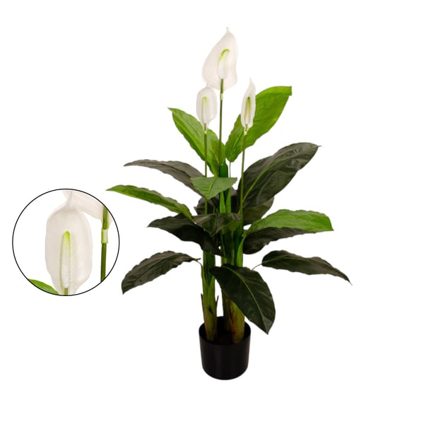 ÁRVORE LÍRIO DA PAZ 1,10 M SILICONADA 3 GALHOS COM VASO
