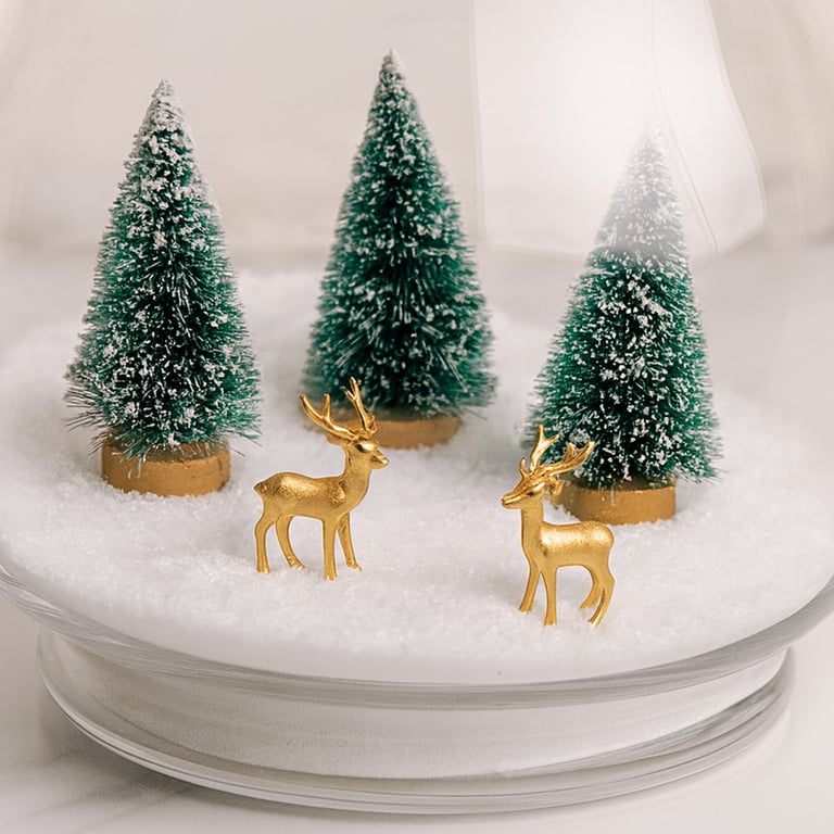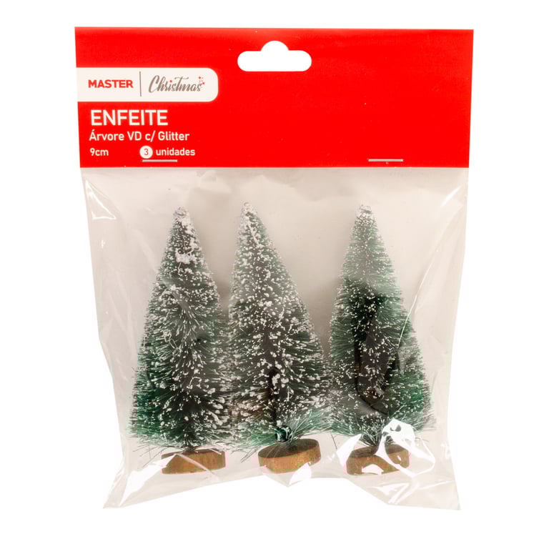 ÁRVORE NATAL 9 CM 3 PEÇAS MESCLADA SUPORTE MADEIRA