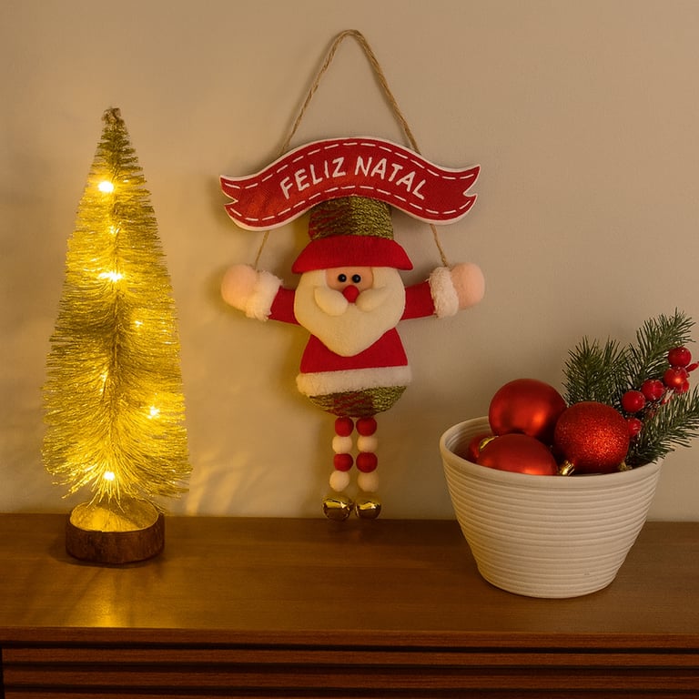 Composição ARAME, AGULHAS DE PINHEIRO, MADEIRA E LED