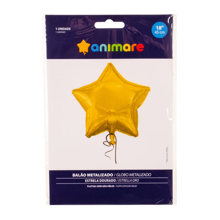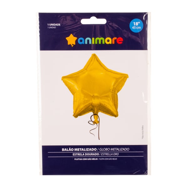 BALÃO METALIZADO 45 CM ESTRELA LISA DOURADA