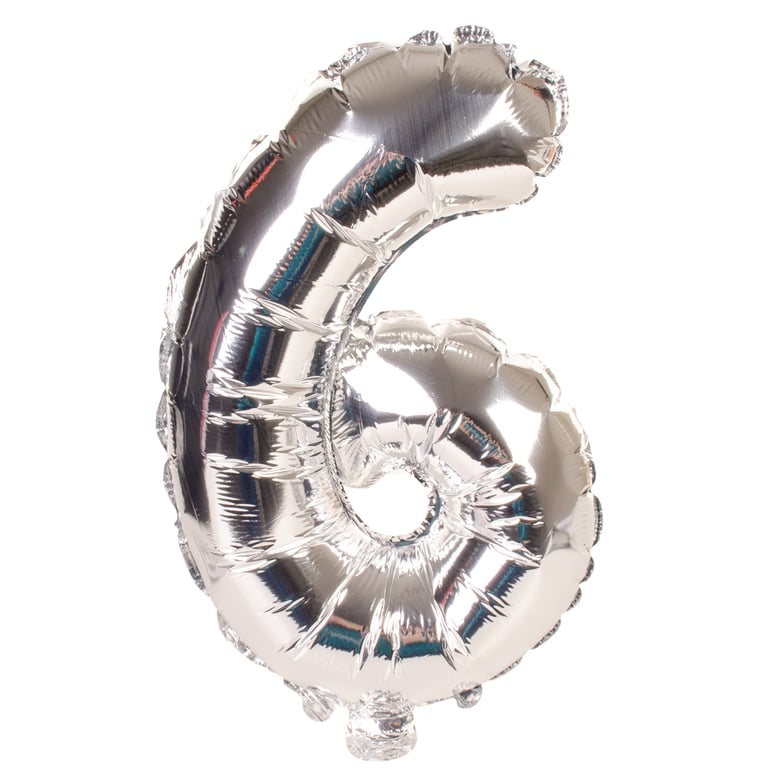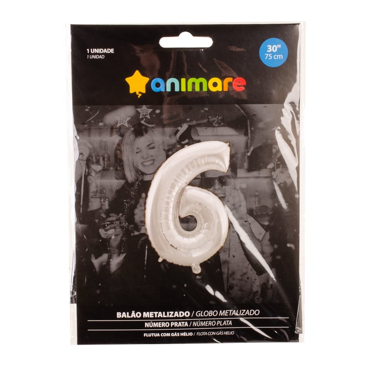 BALÃO METALIZADO 75 CM NÚMERO 6 (SEIS) PRATA