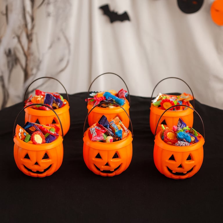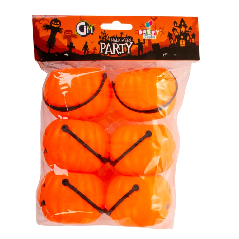 BALDE HALLOWEEN 6 PEÇAS 5,5X6,5 CM ABÓBORA LARANJA