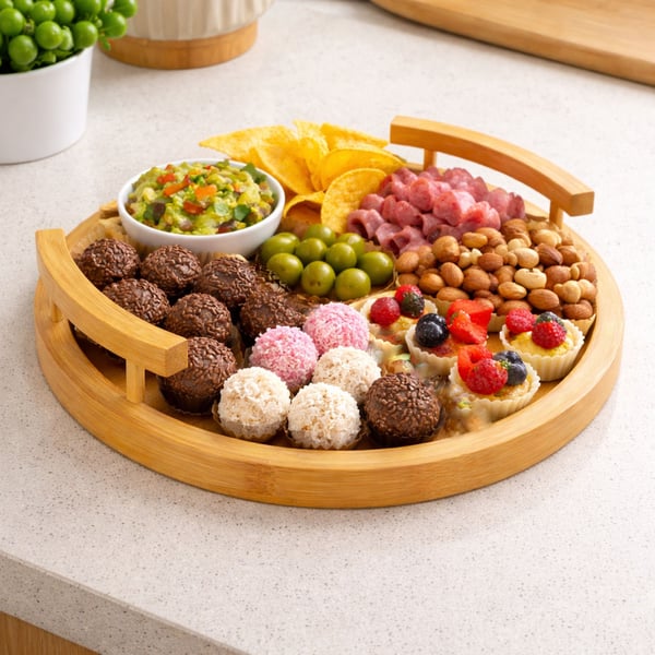 BANDEJA BAMBU 5X30 CM REDONDA COM ALÇAS