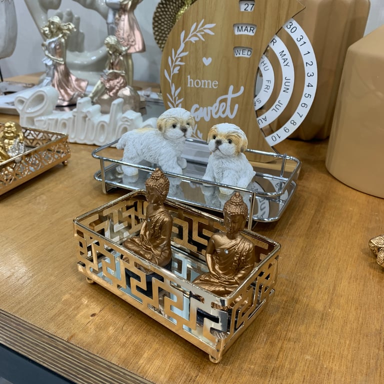 BANDEJA METAL 5X12X7 CM COM ESPELHO RETANGULAR