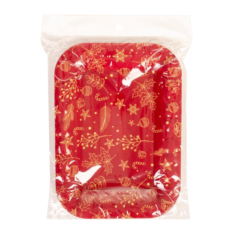 BANDEJA PLÁSTICA 2X21X15 CM 3 PEÇAS RETANGULAR NATAL BORDÔ