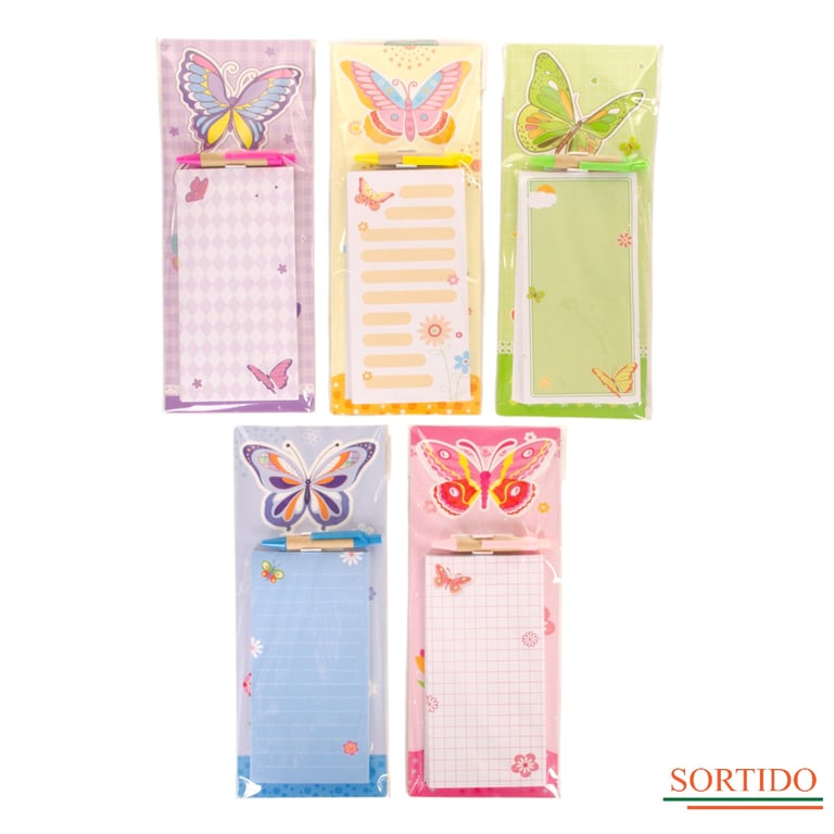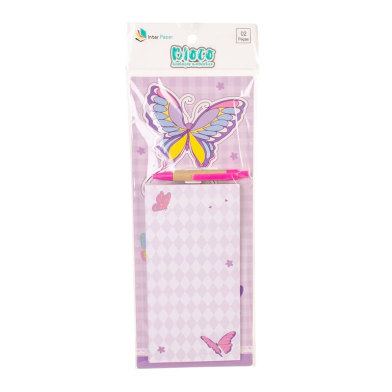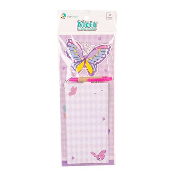 BLOCO ANOTAÇÃO 27X11 CM 40 FOLHAS COM CANETA E IMÃ BORBOLETA