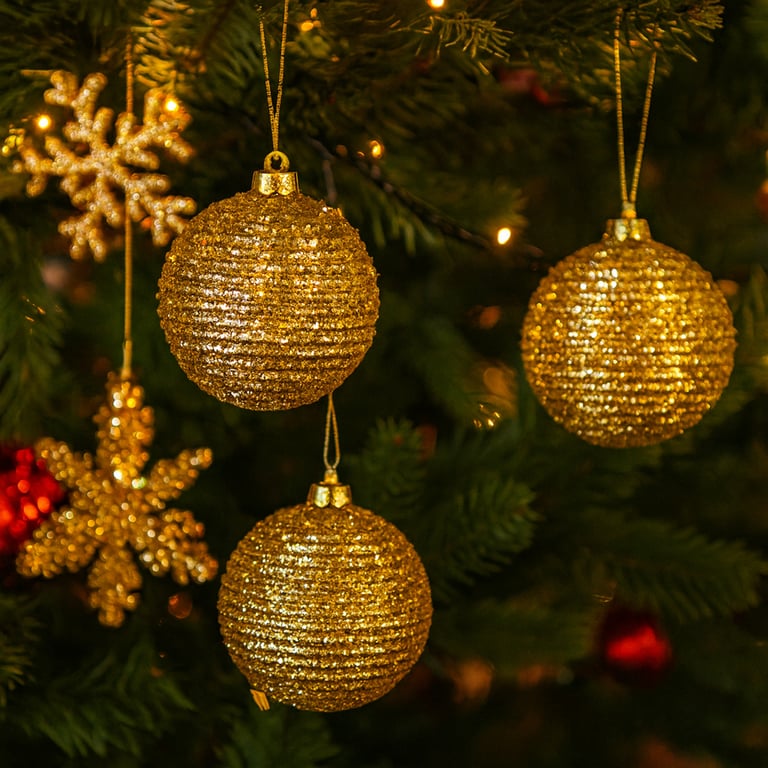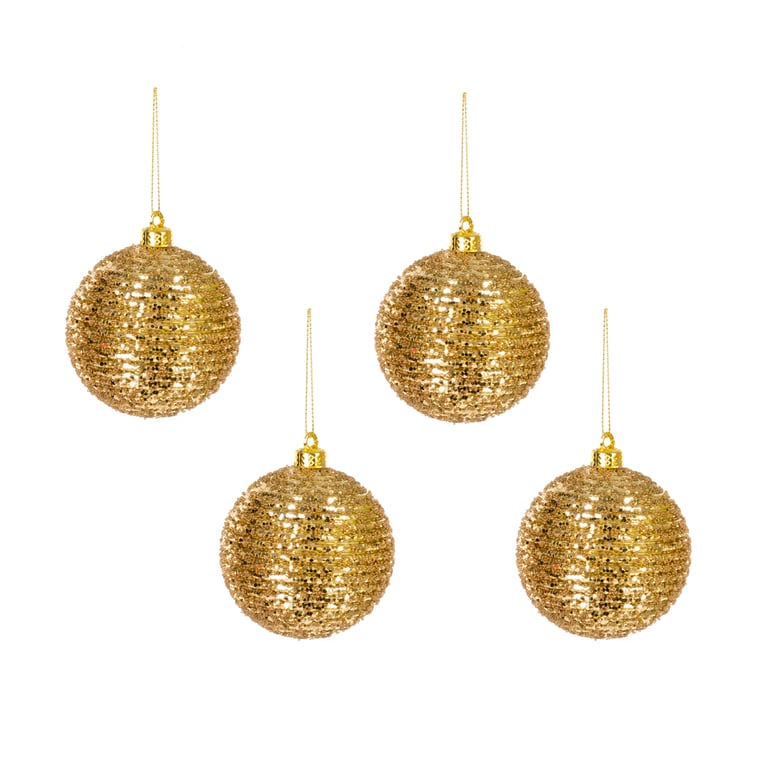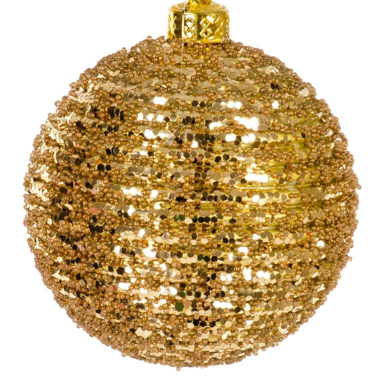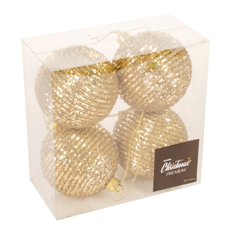 BOLA NATAL Nº 8 DOURADA LANTEJOULAS E MIÇANGAS 4 PEÇAS NA CAIXA