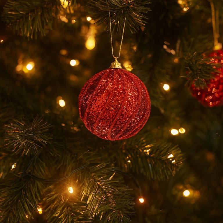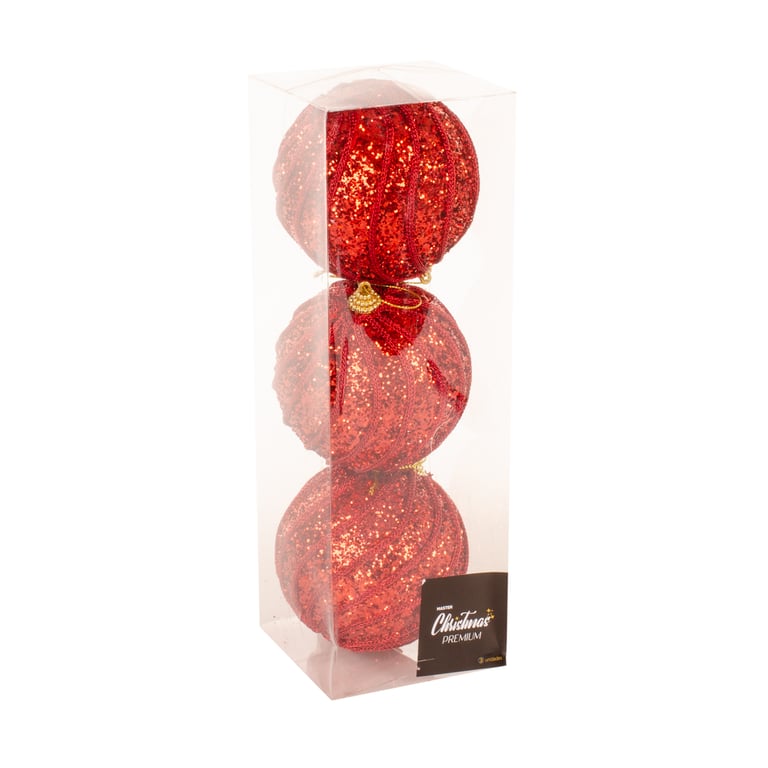 BOLA NATAL Nº 8 VERMELHA COM LANTEJOULAS 3 PEÇAS NA CAIXA
