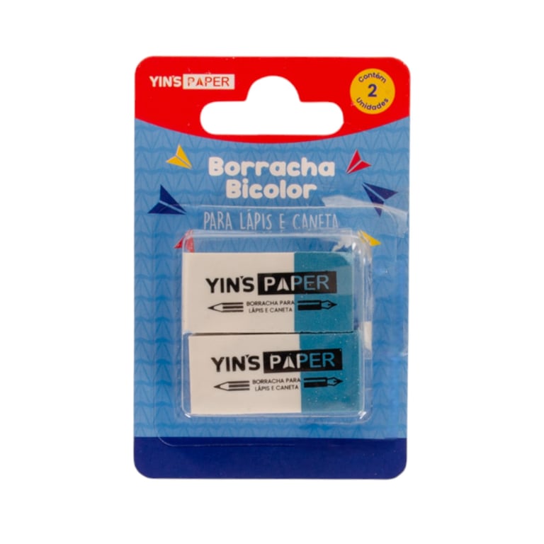 BORRACHA BICOLOR 2X4 CM PARA LÁPIS E CANETA 2 PEÇAS