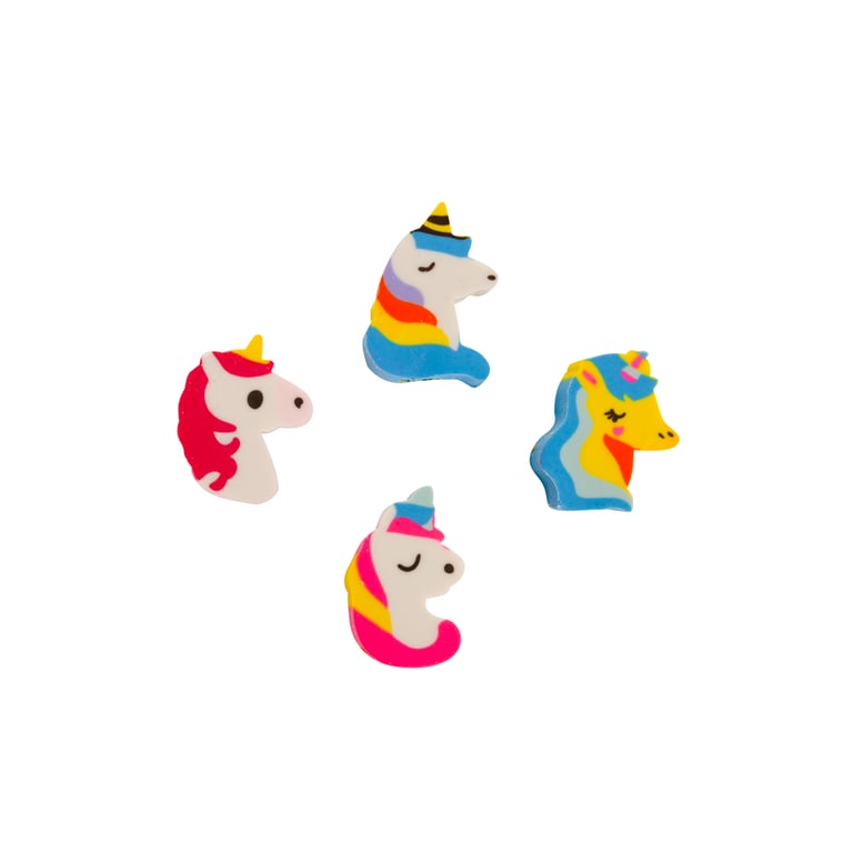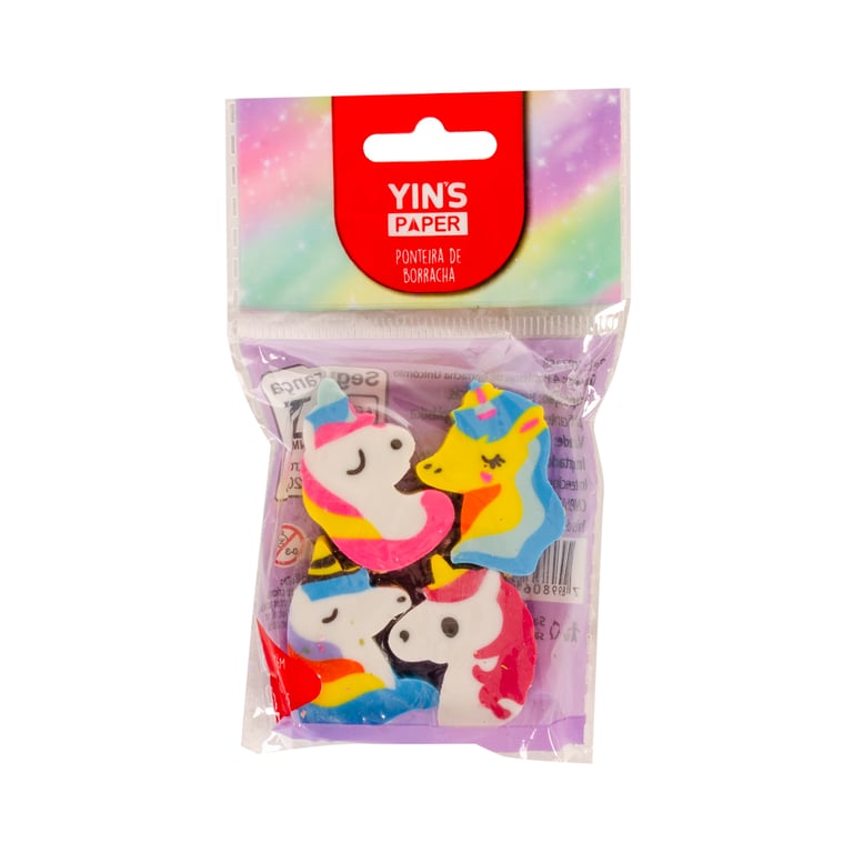 BORRACHA COLORIDA 3X2 CM 4 PONTEIRA 4 PEÇAS UNICÓRNIO