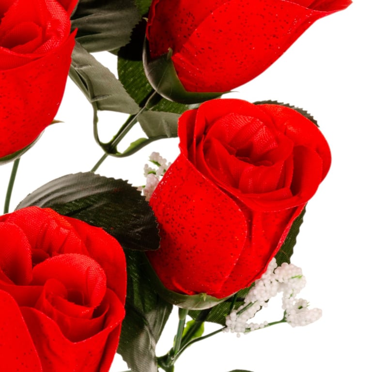BUQUÊ BOTÃO X9 45 CM VERMELHO VELUDO COM GLITTER