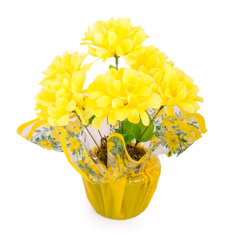 BUQUÊ CRISÂNTEMO X5 36 CM FOLHAS CLARAS