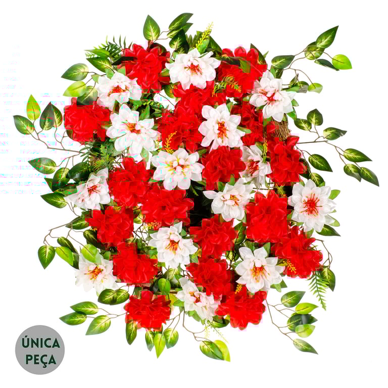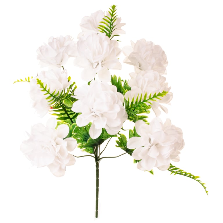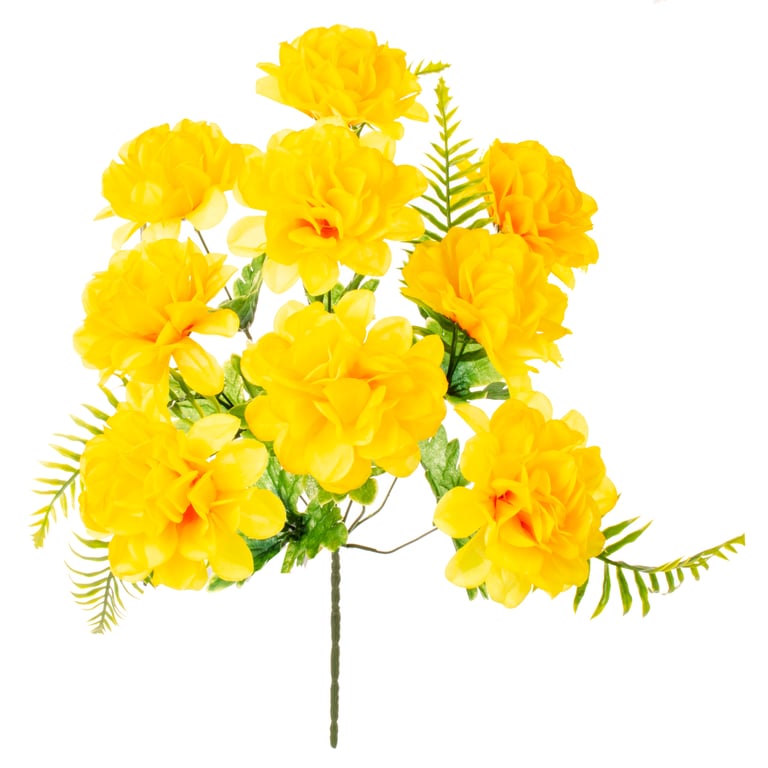 BUQUÊ CRISÂNTEMO X9 48 CM COM SAMAMBAIA FOLHAS MESCLADAS