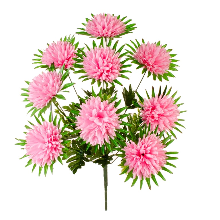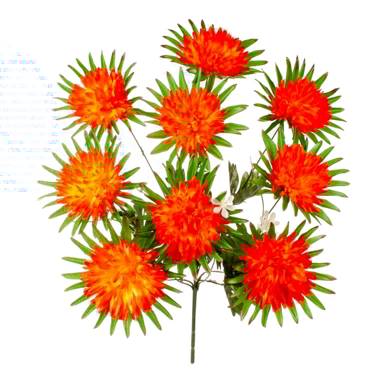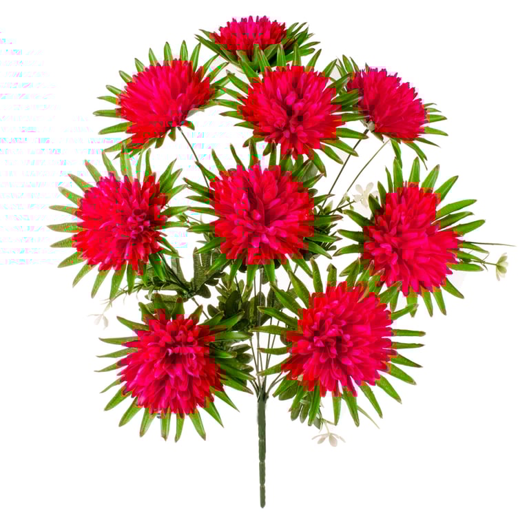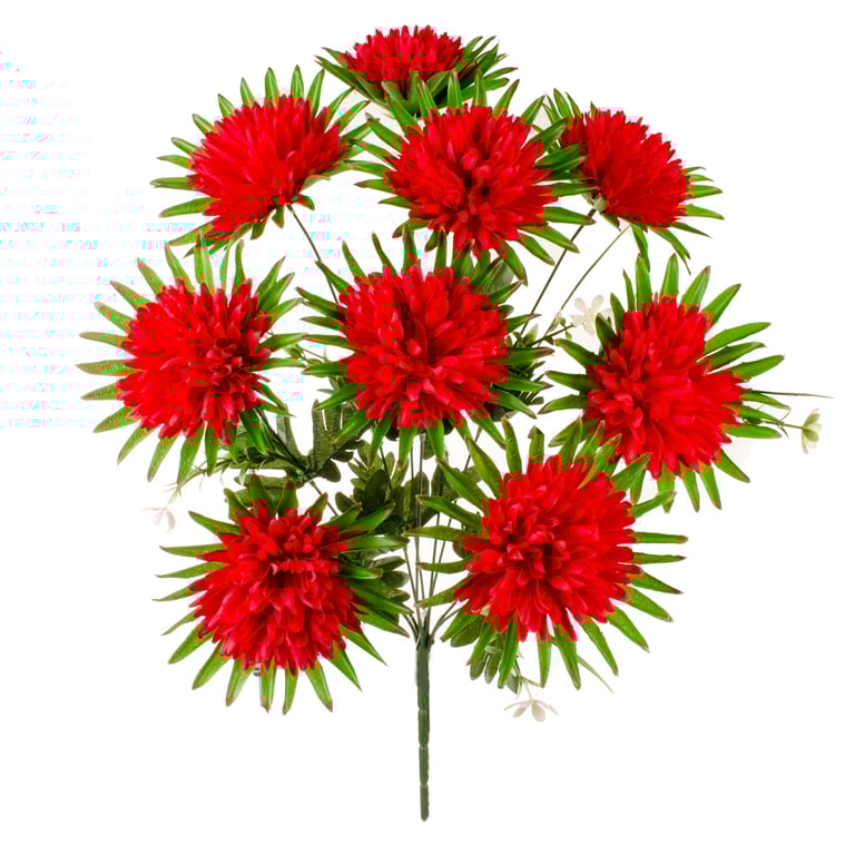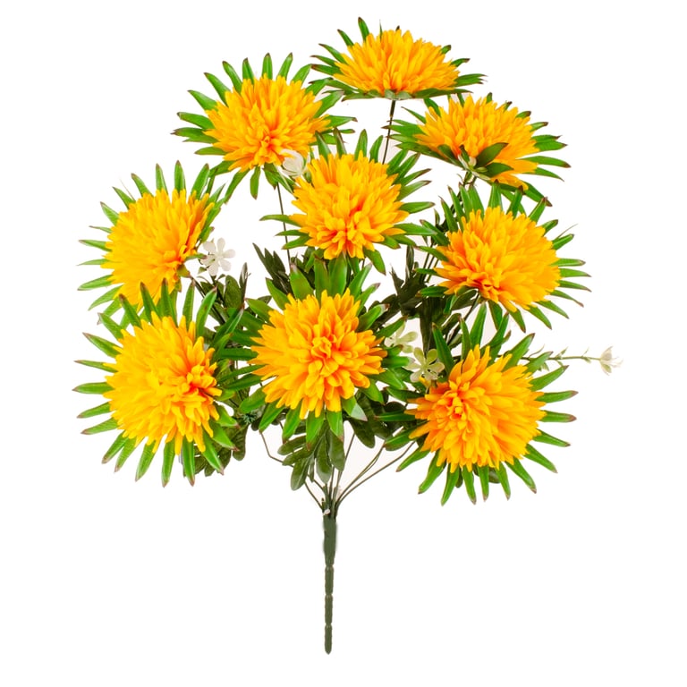 BUQUÊ CRISÂNTEMO X9 50 CM FOLHAS PONTUDAS COM COMPLEMENTO