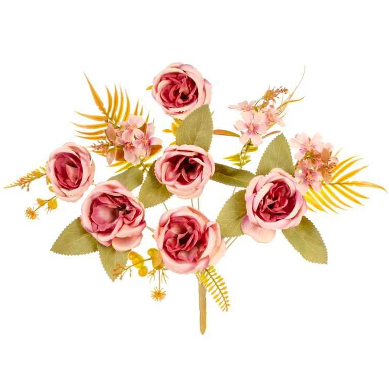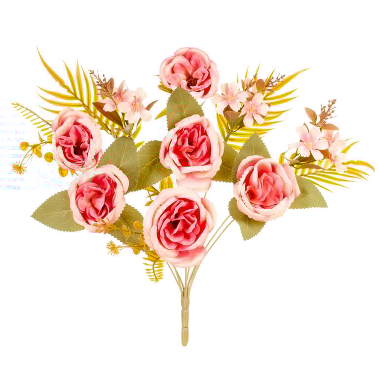 BUQUÊ ROSA X9 42 CM COM SAMAMBAIA OUTONAL