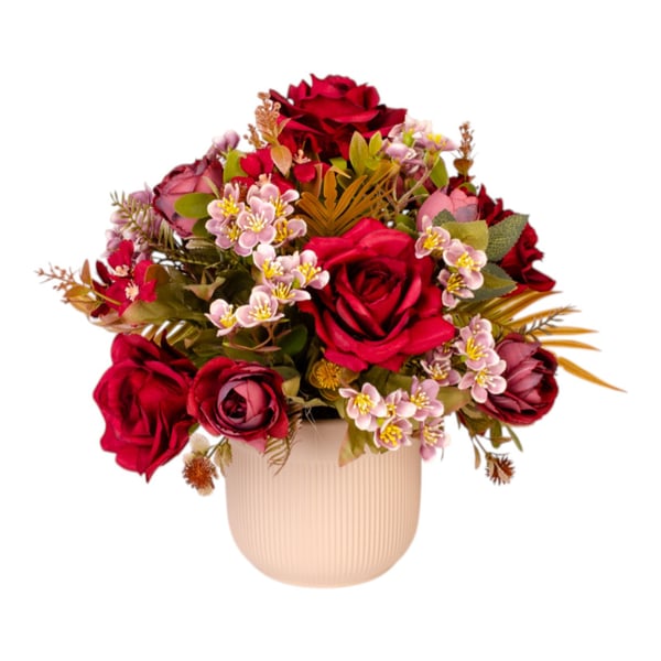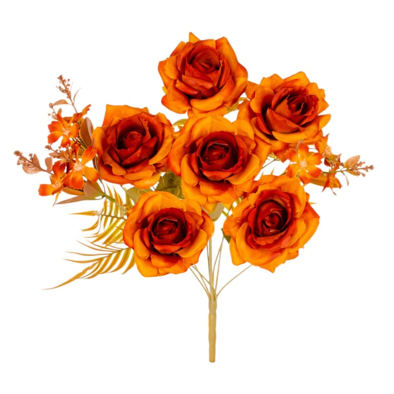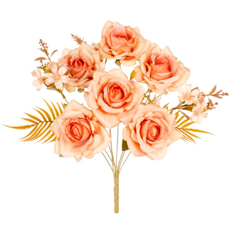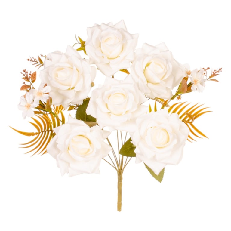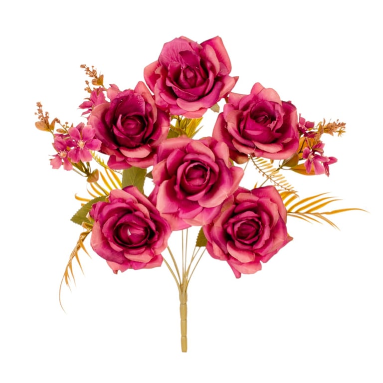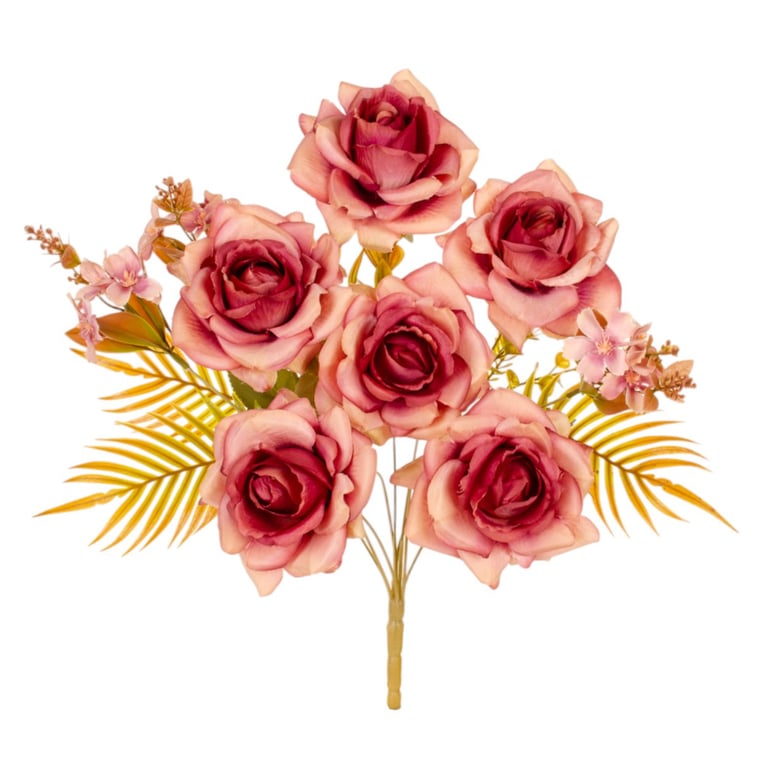 BUQUÊ ROSA X9 6 FLORES 40 CM COM SAMAMBAIA E MARGARIDA