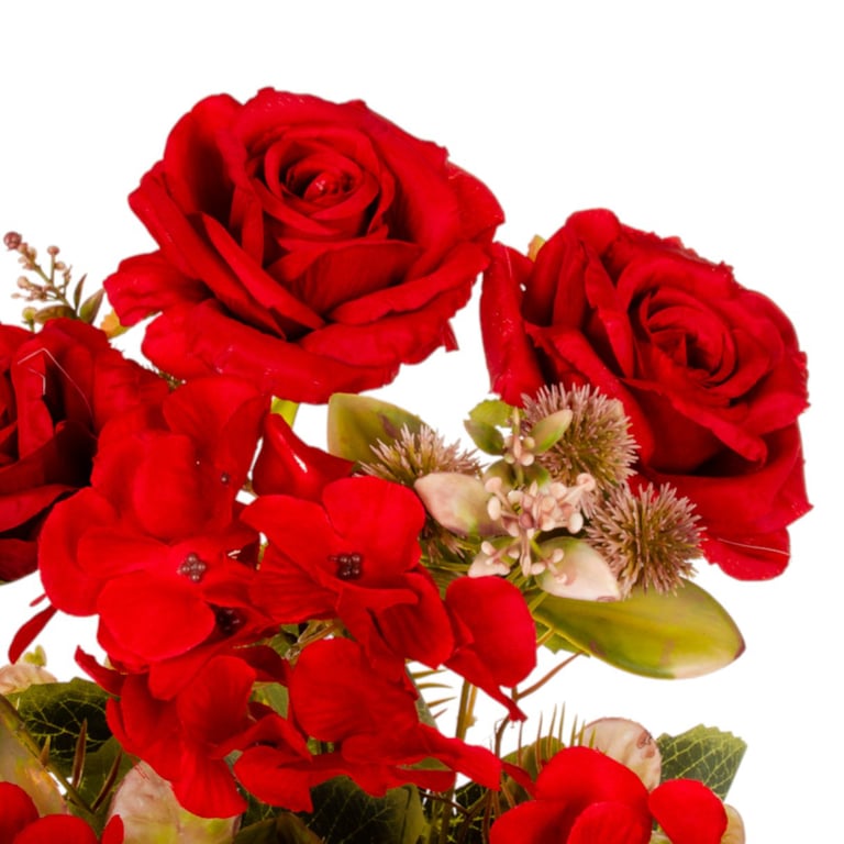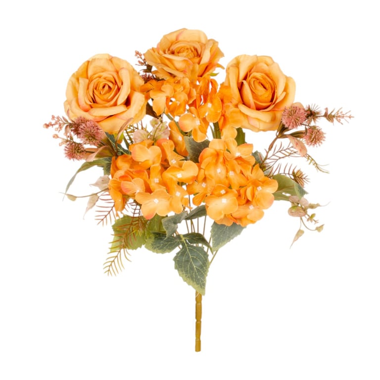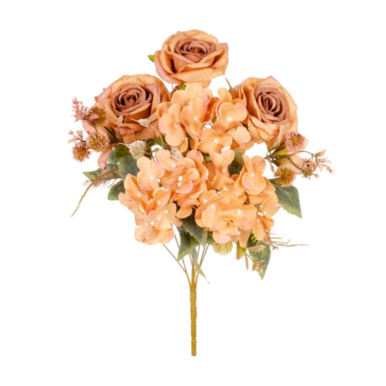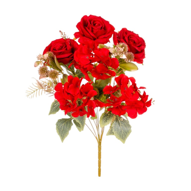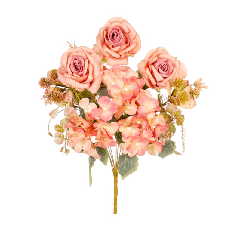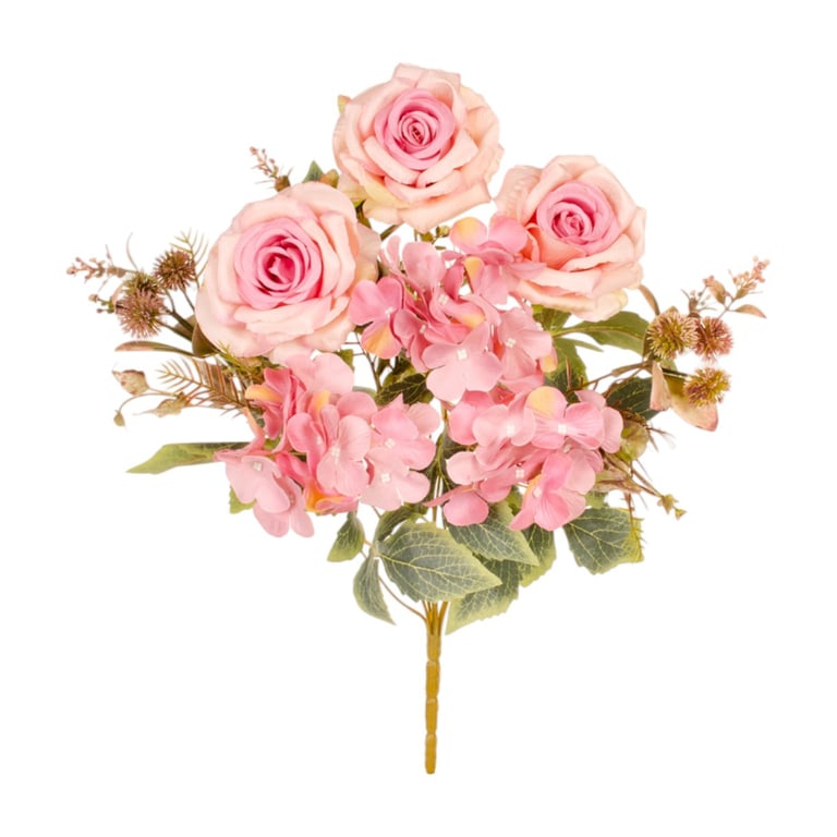 BUQUÊ ROSA X9 COM HORTÊNSIA 48 CM EUCALIPTO E COMPLEMENTOS
