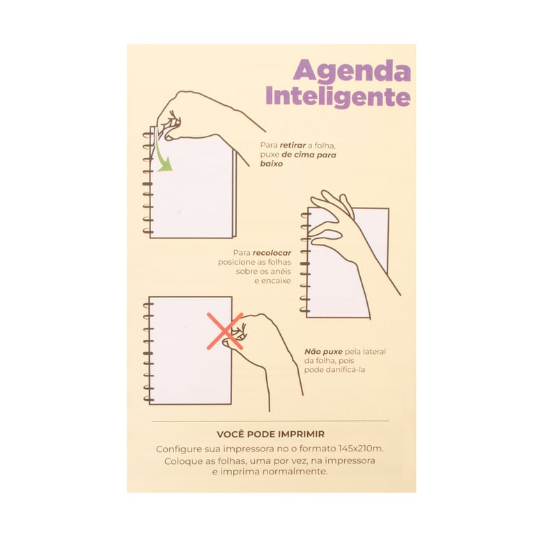 POSSUI ABERTURAS NAS FOLHAS PARA SEREM RETIRADAS E COLOCADAS NA AGENDA SEM DANIFICA-LÁS.