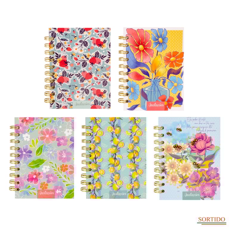 CADERNO / BLOCO ANOTAÇÃO 15X11 CM 96 FOLHAS ESPIRAL FLORES / FRUTAS