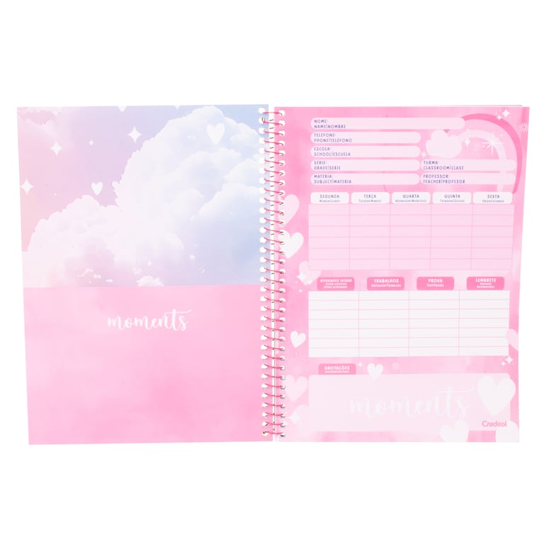 CADERNO UNIVERSITÁRIO 80 FOLHAS 1 MATÉRIA ESPIRAL MOMENTS CAPA DURA