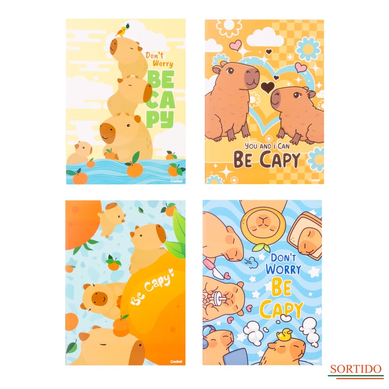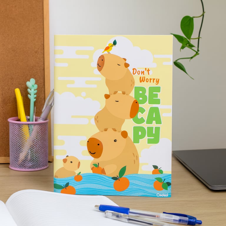 CADERNO UNIVERSITÁRIO 80 FOLHAS BROCHURA COSTURADO CAPIVARA BE CAPY CAPA DURA