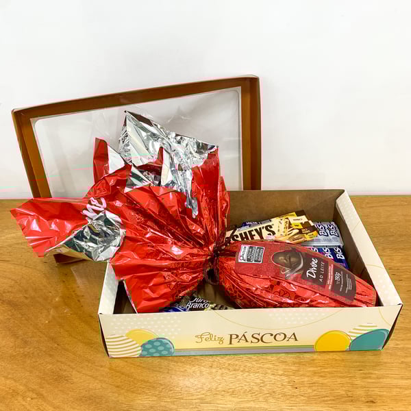 CAIXA PÁSCOA RETANGULAR 10X35X26 CM COM VISOR ACOPLADA