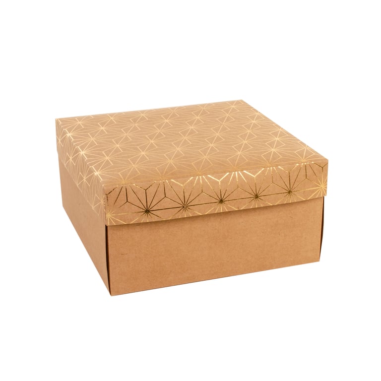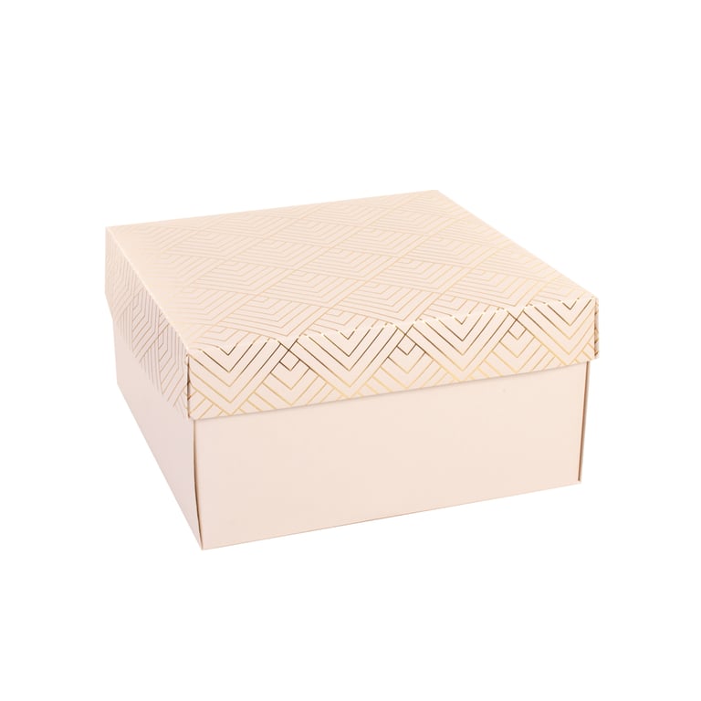 CAIXA QUADRADA 10X20X20 CM DETALHES METALIZADOS CARTONADA