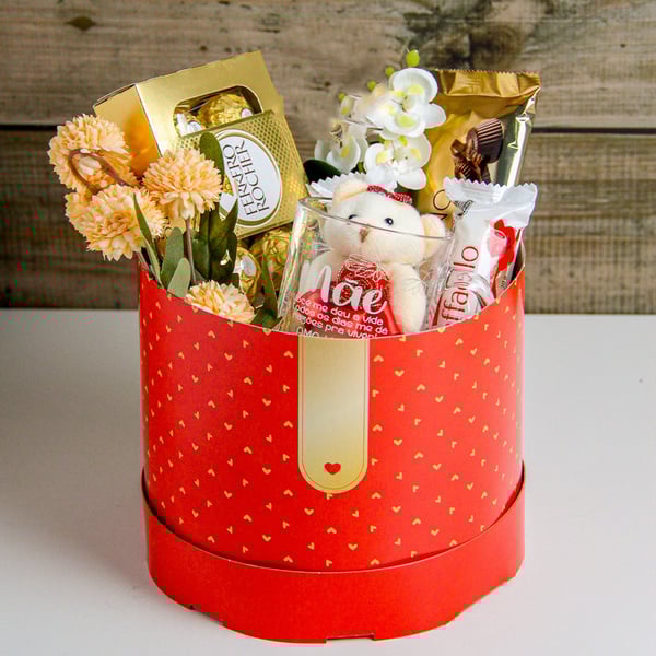 CAIXA REDONDA 12X15,5 CM DECORADA ACOPLADA