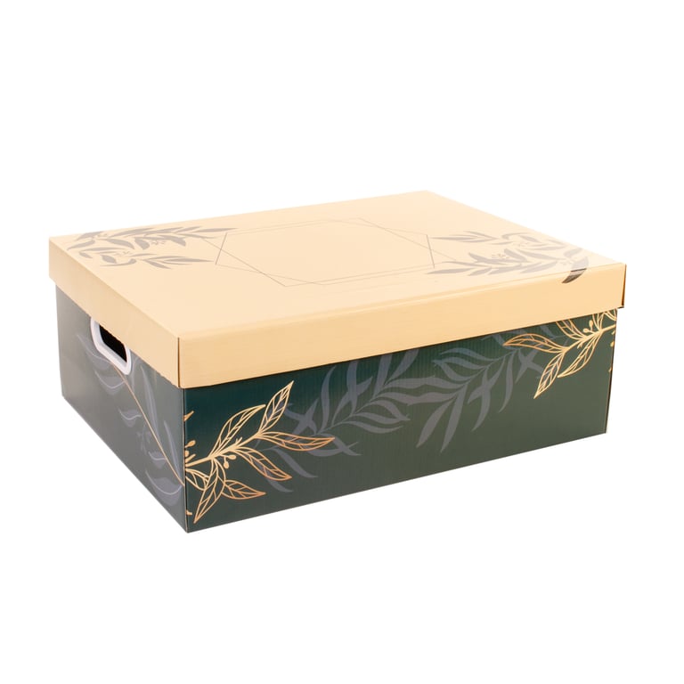 CAIXA RETANGULAR 16X42X32 CM DECORADA COM ALÇA ACOPLADA