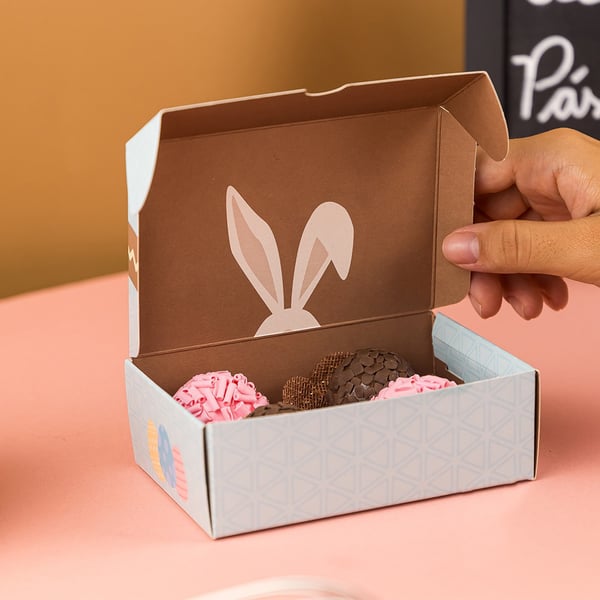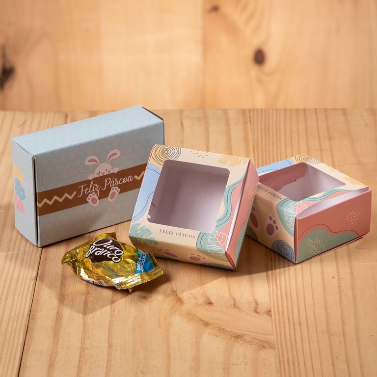 CAIXA RETANGULAR 4X12X8 CM TAMPA FIXA FELIZ PÁSCOA FLEXÍVEL