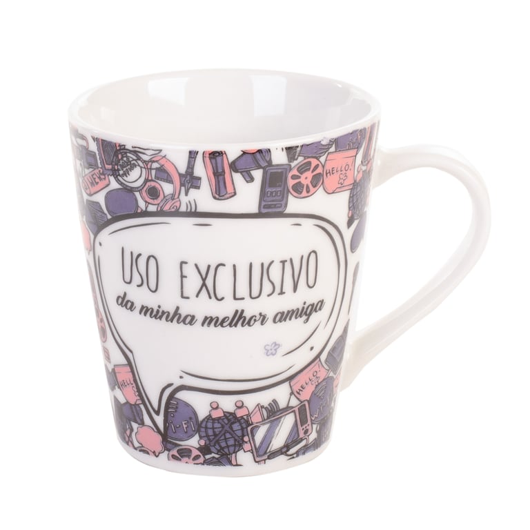 CANECA / XÍCARA 310 ML PORCELANA AMIGO / AMIGA NA CAIXA