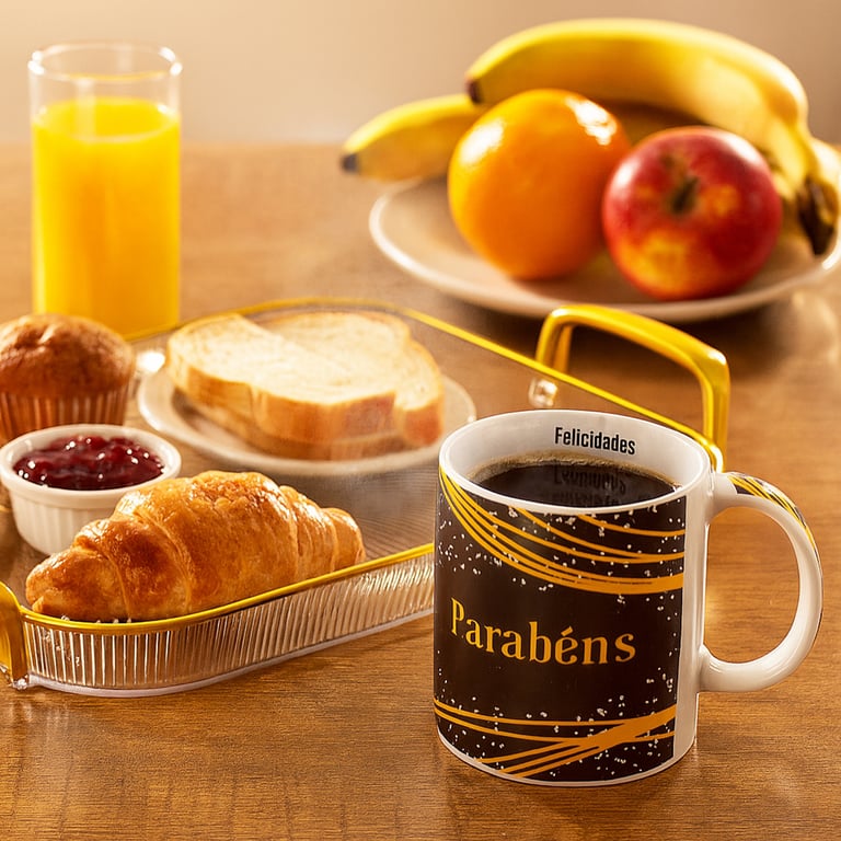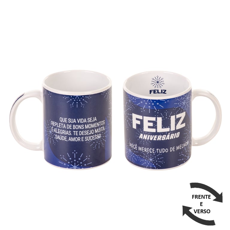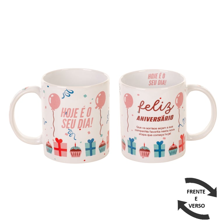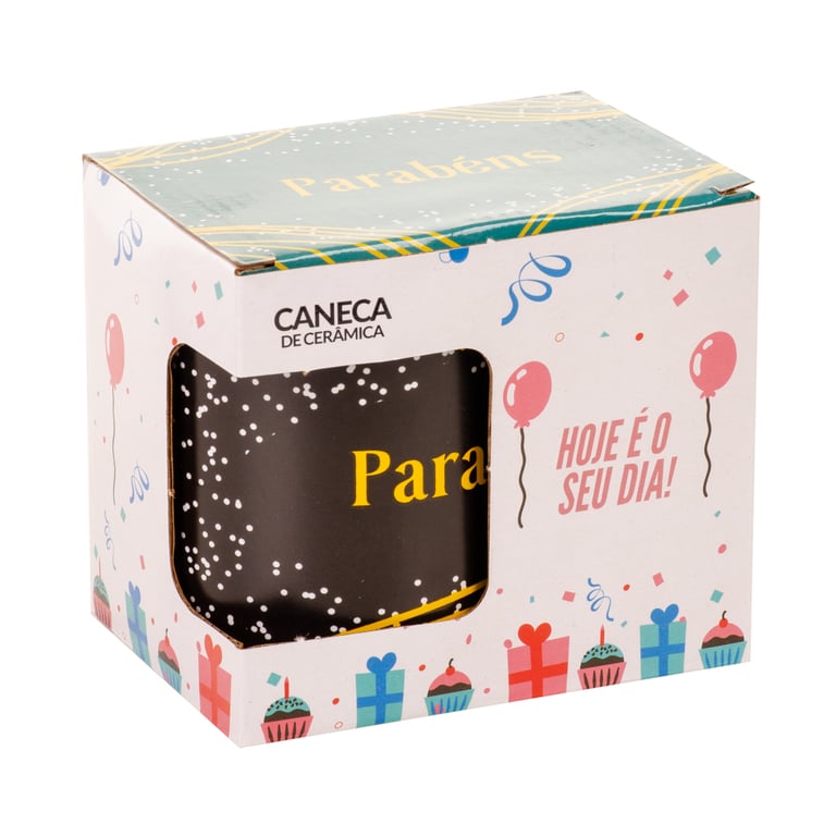 CANECA / XÍCARA 330 ML CERÂMICA ANIVERSÁRIO NA CAIXA