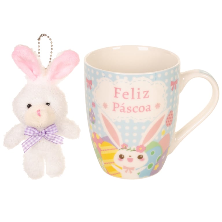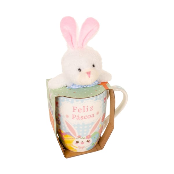 CANECA / XÍCARA PORCELANA 300 ML COM COELHO PELÚCIA