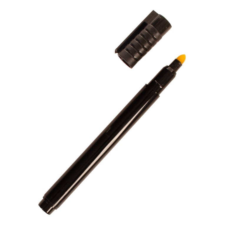 Composição RESINA TERMOPLÁSTICA, CARGA ATÓXICA À BASE DE ÁGUA, CORANTES E UMECTANTES, PAVIO DE ACETATO E PONTA DE FIBRA DE POLIÉSTER.