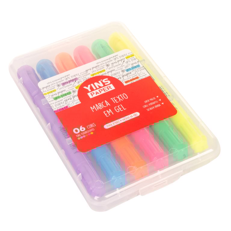 CANETA MARCA TEXTO EM GEL 6 PEÇAS CORES NEON COM ESTOJO