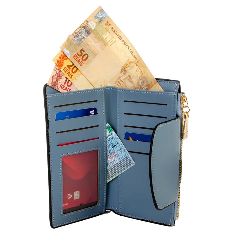 Observações POSSUI VÁRIAS DIVISÓRIAS PARA COLOCAR CARTÕES.BOTÃO PARA FECHAR COM PRESÃO. 1 BOLSO EXTERNO COM ZÍPER.