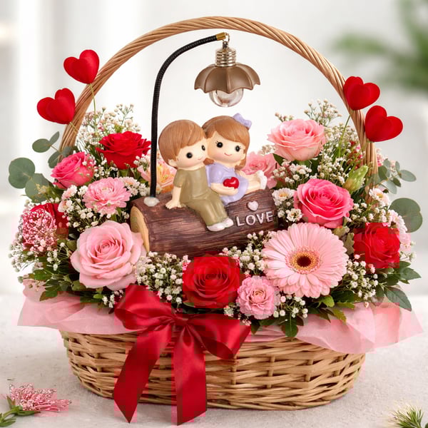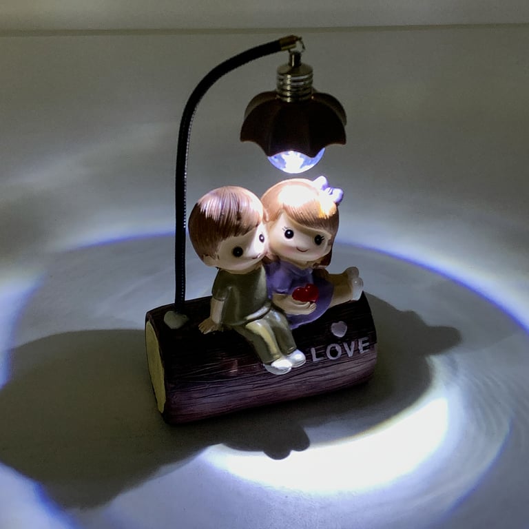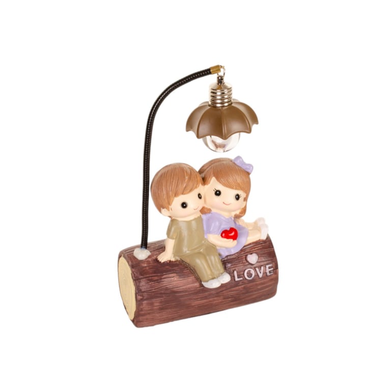 CASAL NAMORADOS RESINA 19X11X5 CM COM LUZ NO TRONCO LOVE