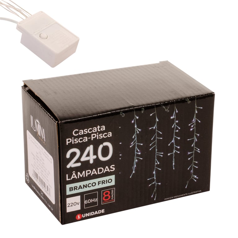 CASCATA 240 LEDS 60 CMX3,6 M BRANCO FRIO MACHO / FÊMEA 8 F FIO TRANSPARENTE 220V