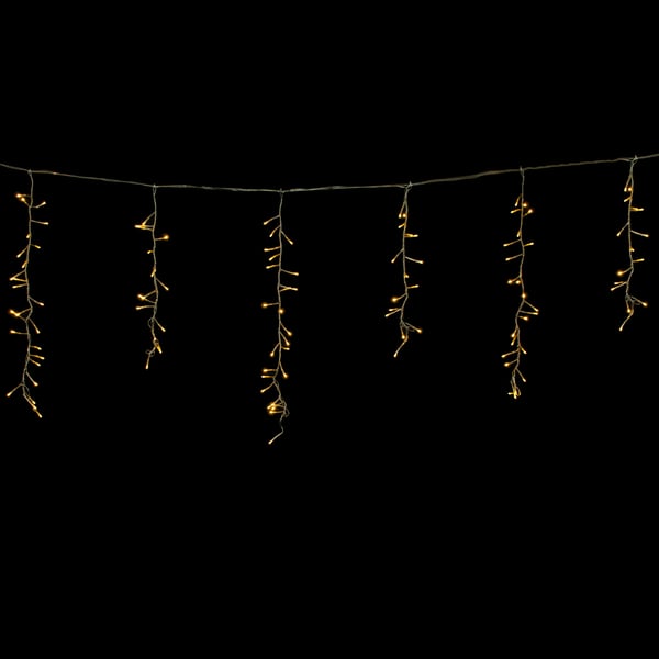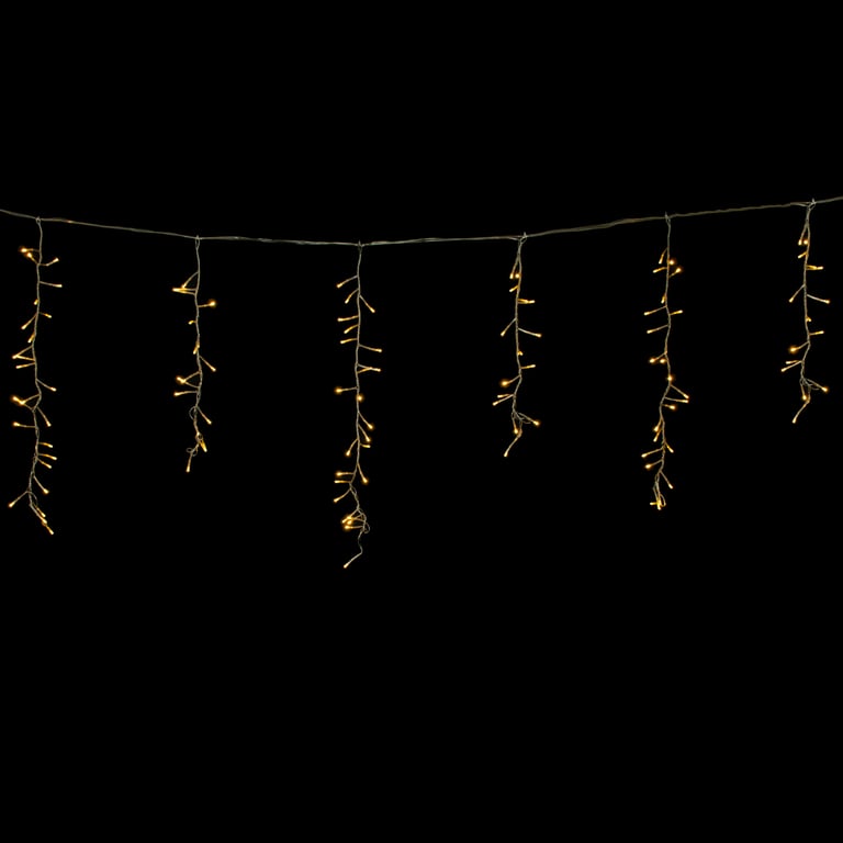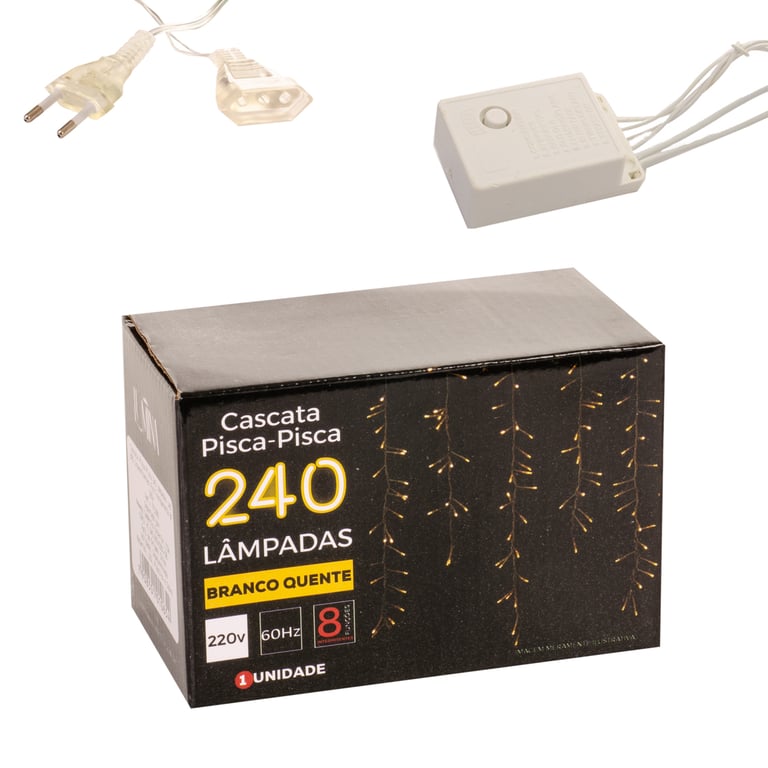 CASCATA 240 LEDS BRANCO QUENTE 60 CMX3,6 M MACHO / FÊMEA FIO TRANSPARENTE 220V