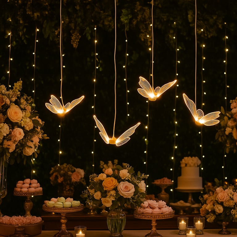CASCATA / CORDÃO PENDENTE 10 BORBOLETAS 2 M LED BRANCO QUENTE FIO BRANCO 220 V