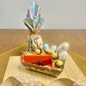 CESTA KRAFT PÁSCOA 8X25X18 CM COM ALÇA ACOPLADA