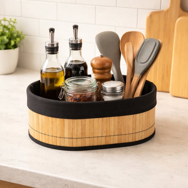 CESTA / ORGANIZADOR BAMBU 12X30X20 CM COM TECIDO
