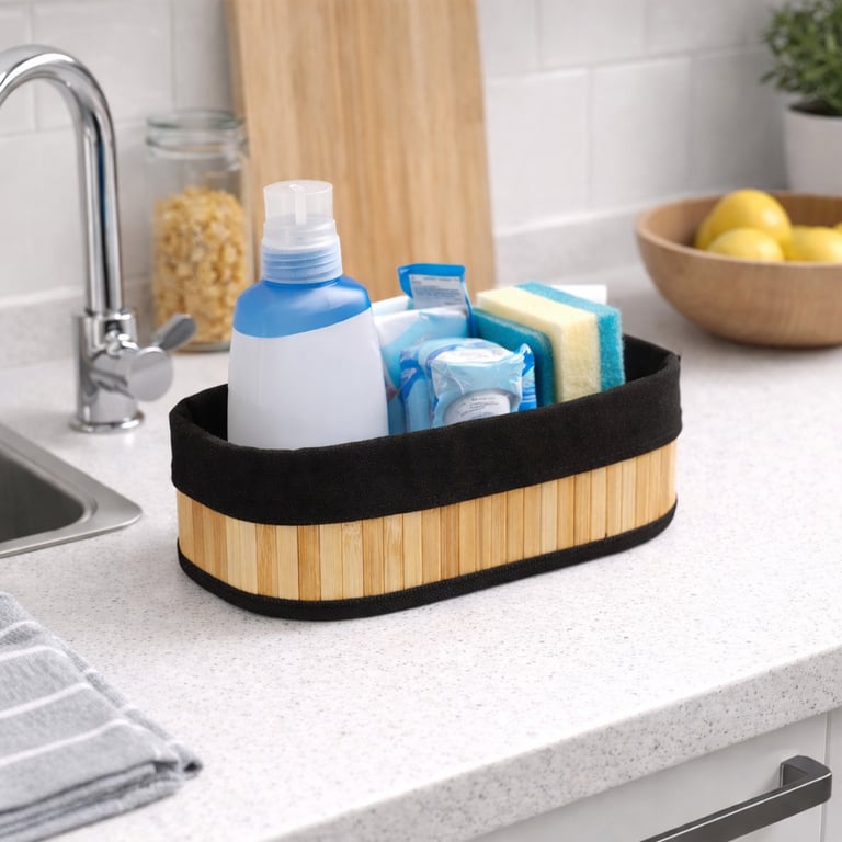 CESTA / ORGANIZADOR BAMBU 8X21,5X8 CM COM TECIDO