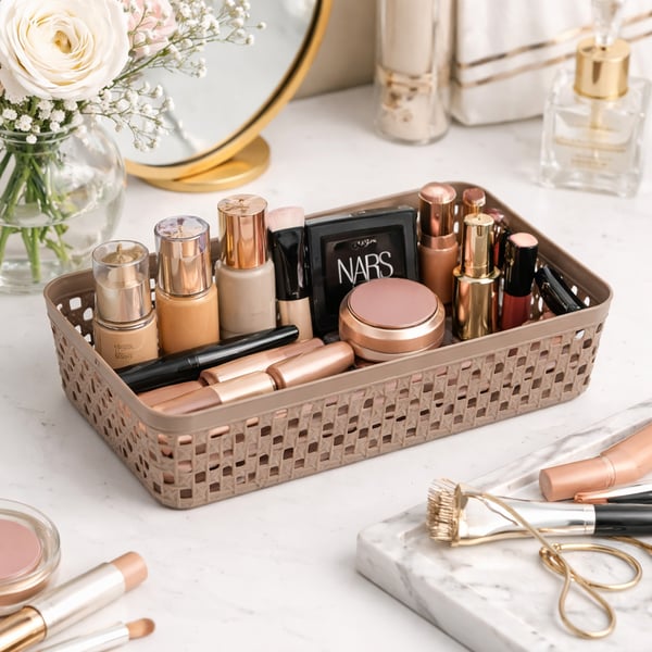 CESTA / ORGANIZADOR PLÁSTICO 6X26X13 CM VAZADA TRAMA JUTA