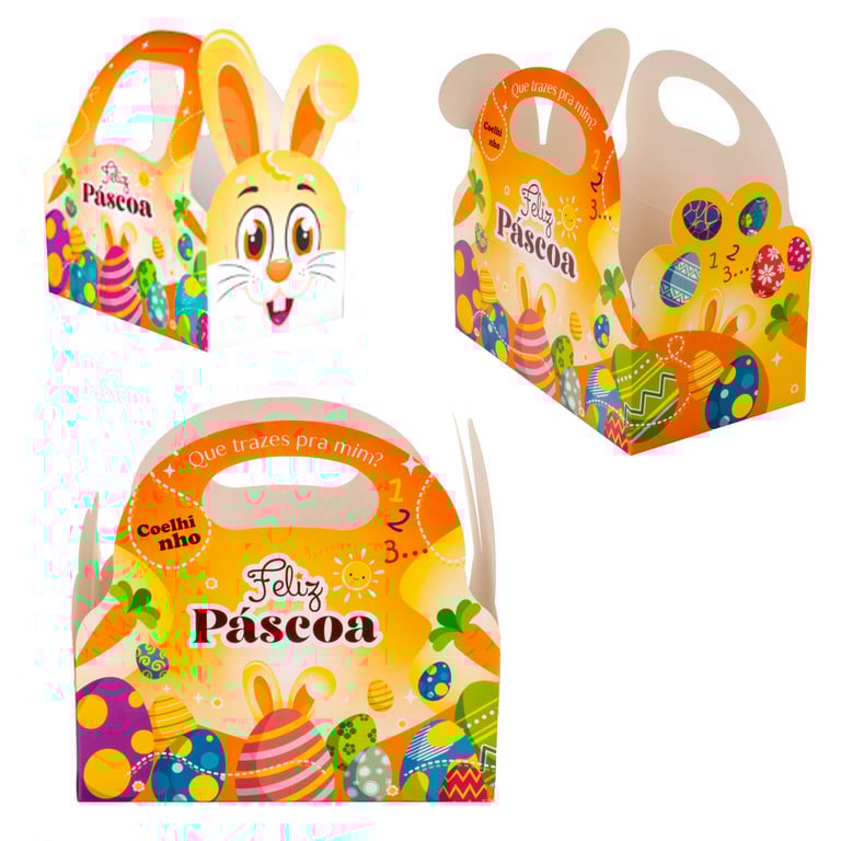 CESTA PÁSCOA 11X17X19 CM COELHO FELIZ PÁSCOA