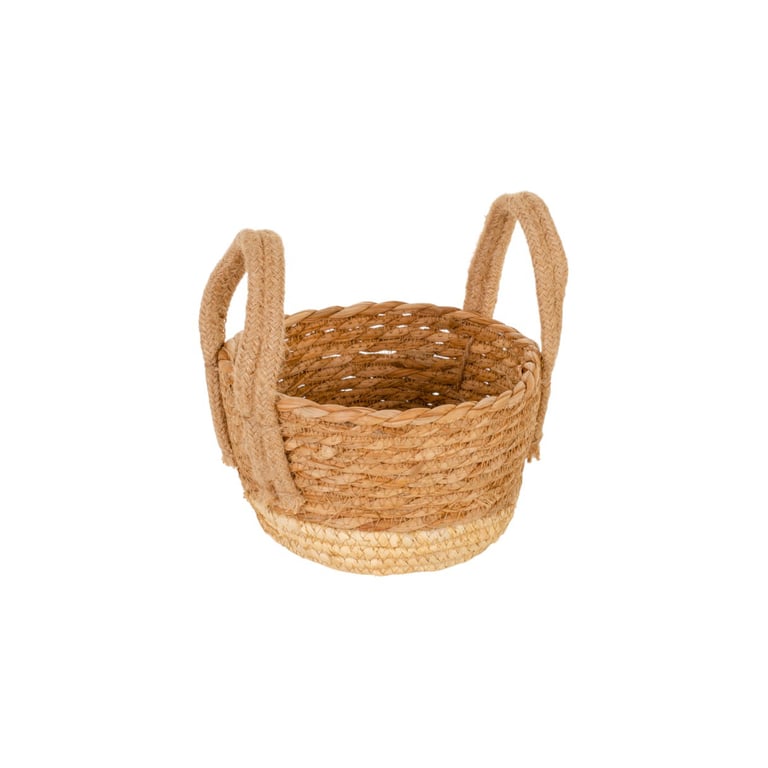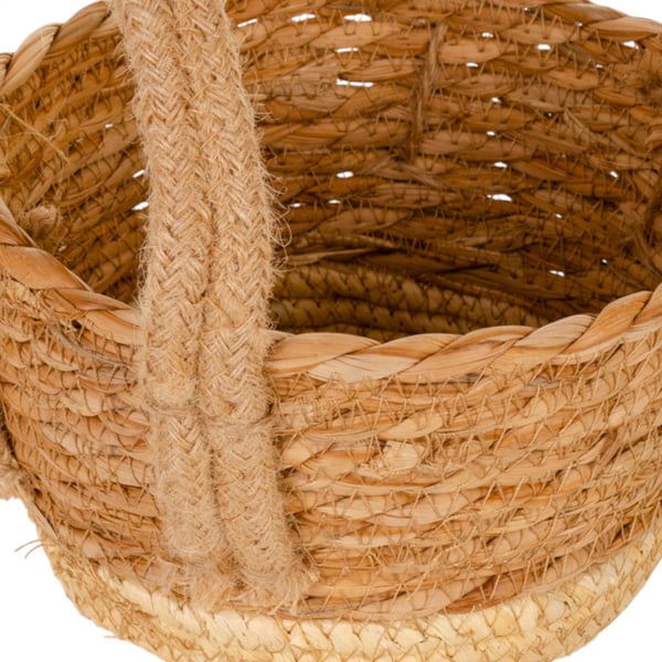 CESTO / CACHEPÔ PALHA 11,5X19 CM BASE BEGE COM ALÇAS MULTIUSO