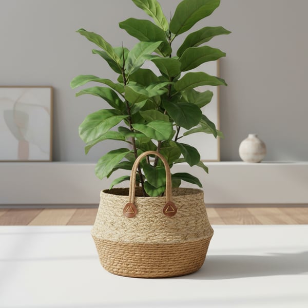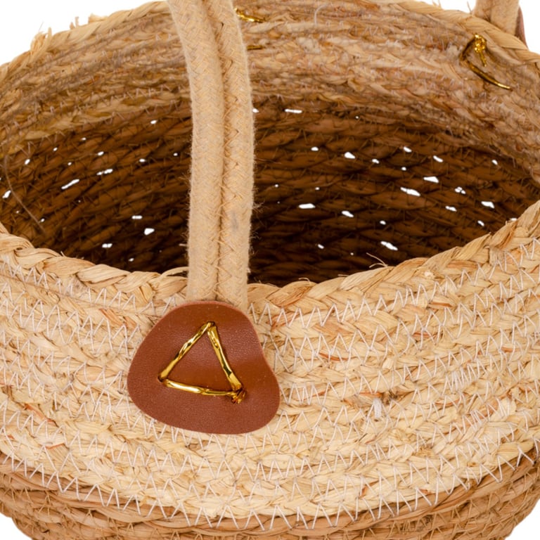 CESTO / CACHEPÔ PALHA 12X25 CM BORDA BEGE COM ALÇAS MULTIUSO